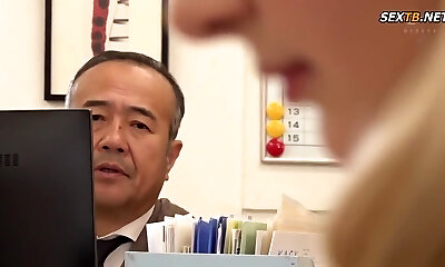 Grubby blonde hoe finds a hot connection with her Japanese husband's boss.
