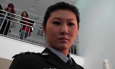 Hot stewardess is an Asian doll in high high-heeled slippers
