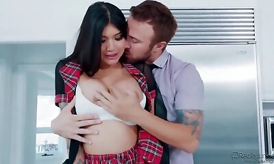 Cuckold husband watches chesty Asian wife Brenna Sparks riding a BBC