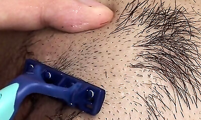 Horny Japanese school-girl trims her beaver before a horny dt - Best JAV!