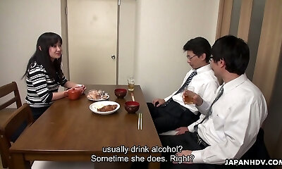 Too tired husband falls asleep while his accomplice fucks his wife Risa Kurokawa