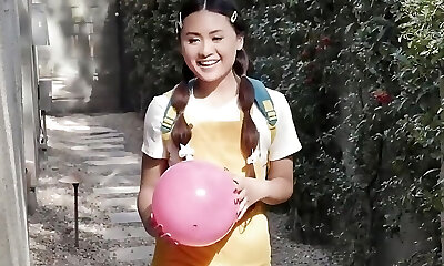 Teenie Princess Ella Voneva Gets Her Asian Pussy Rammed By Diamond Banks' Huge Strap On - LittleAsians FFM Three-way