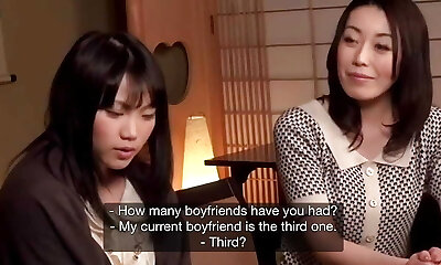 Two friends visited japanese nubile for insane threesome and some creampies