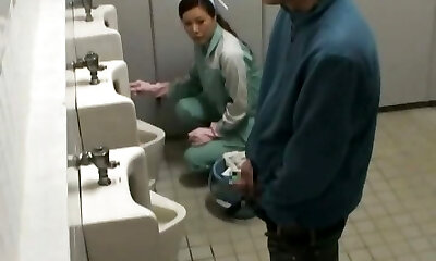 Asian lady is cleaning the wrong public